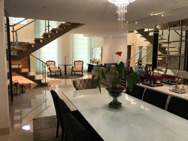 Casa sofisticada, com acabamentos modernos e de muito bom gosto, com aproveitamento de todos os espaços, muito iluminada, área de lazer com ambientes integrados com spa, piscina e churrasqueira, tem 5 amplas suítes, hidromassagem, living com pé direito duplo, sala de jantar, estar, escritório, lavabo, ar condicionado em todos os ambientes, localizada em uma maravilhosa esquina com área verde não edificante, muito próxima a portaria de um dos condomínios mais alto padrão de Alphaville